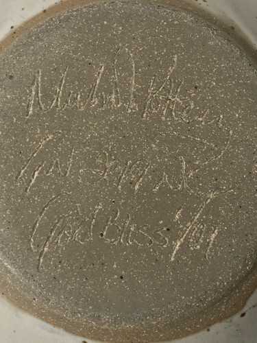 This Studio Pottery Bowl is a stunning piece that showcases a beautiful blue, white, and brown color scheme, with a decorative swirl giving it a unique and abstract design. Handmade in North Carolina, this 8-inch round bowl is perfect for serving soups or pastas, adding a touch of contemporary country style to your dining table. With a glossy finish and being signed by the artist, this one-of-a-kind piece is sure to enhance any occasion with its handmade charm and artistic flair.