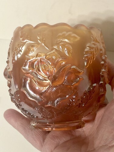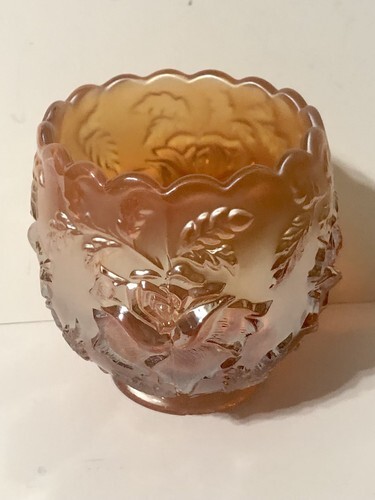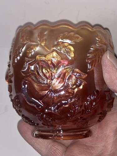 Dugan Marigold Wreath of Roses Carnival Glass Bowl Tea light Candy Dish 3.5”