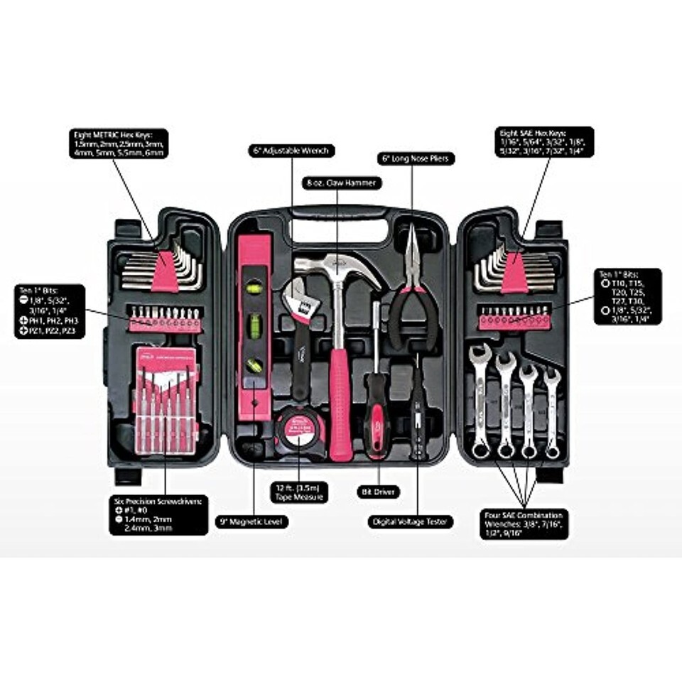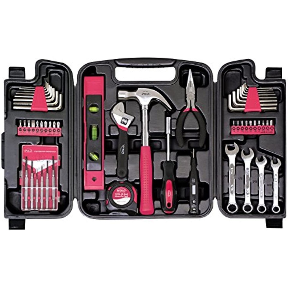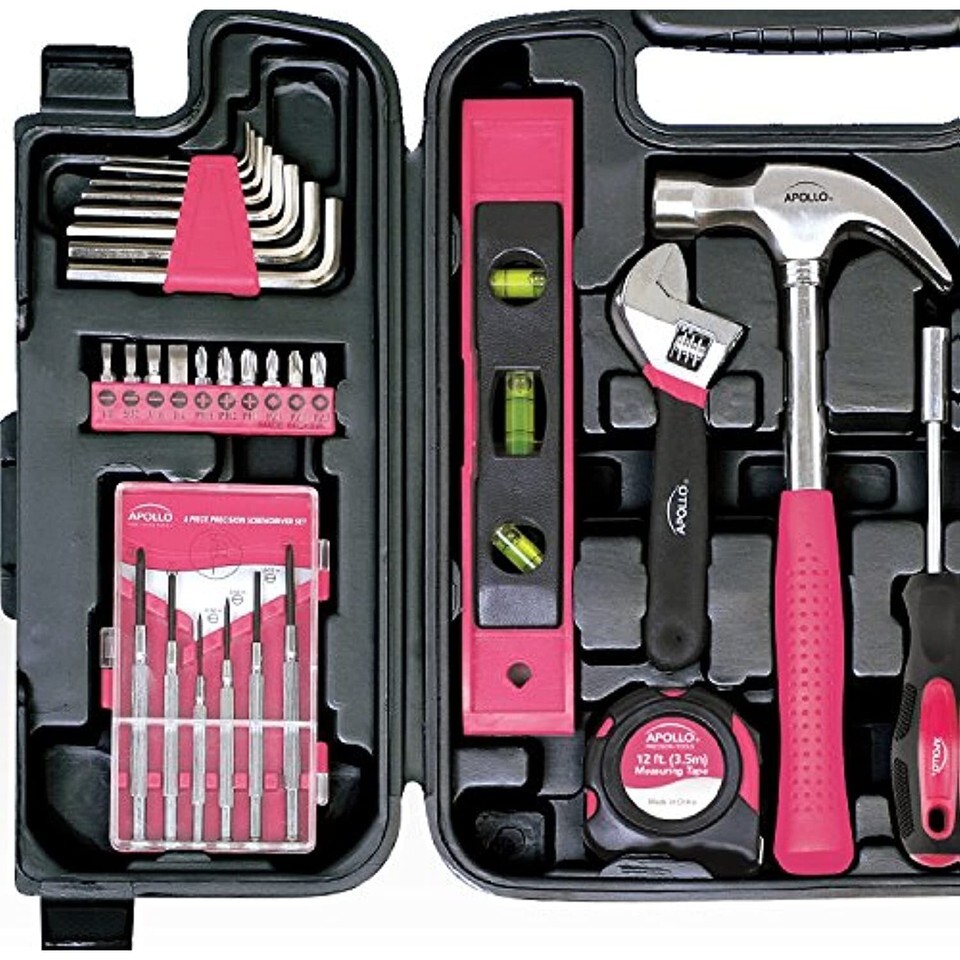 The Apollo Tools 53-Piece Pink Household Tool Kit includes: