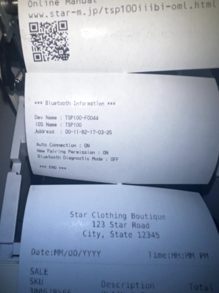 TSP143IIIBI BLUETOOTH RECEIPT PRINTER