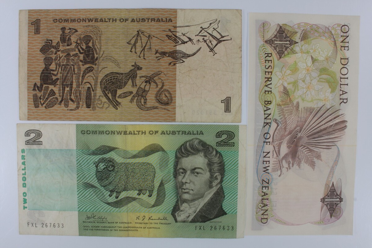 Australia New Zealand Currency Set Aus 1972 $ 1 NZ (1981-85) $1