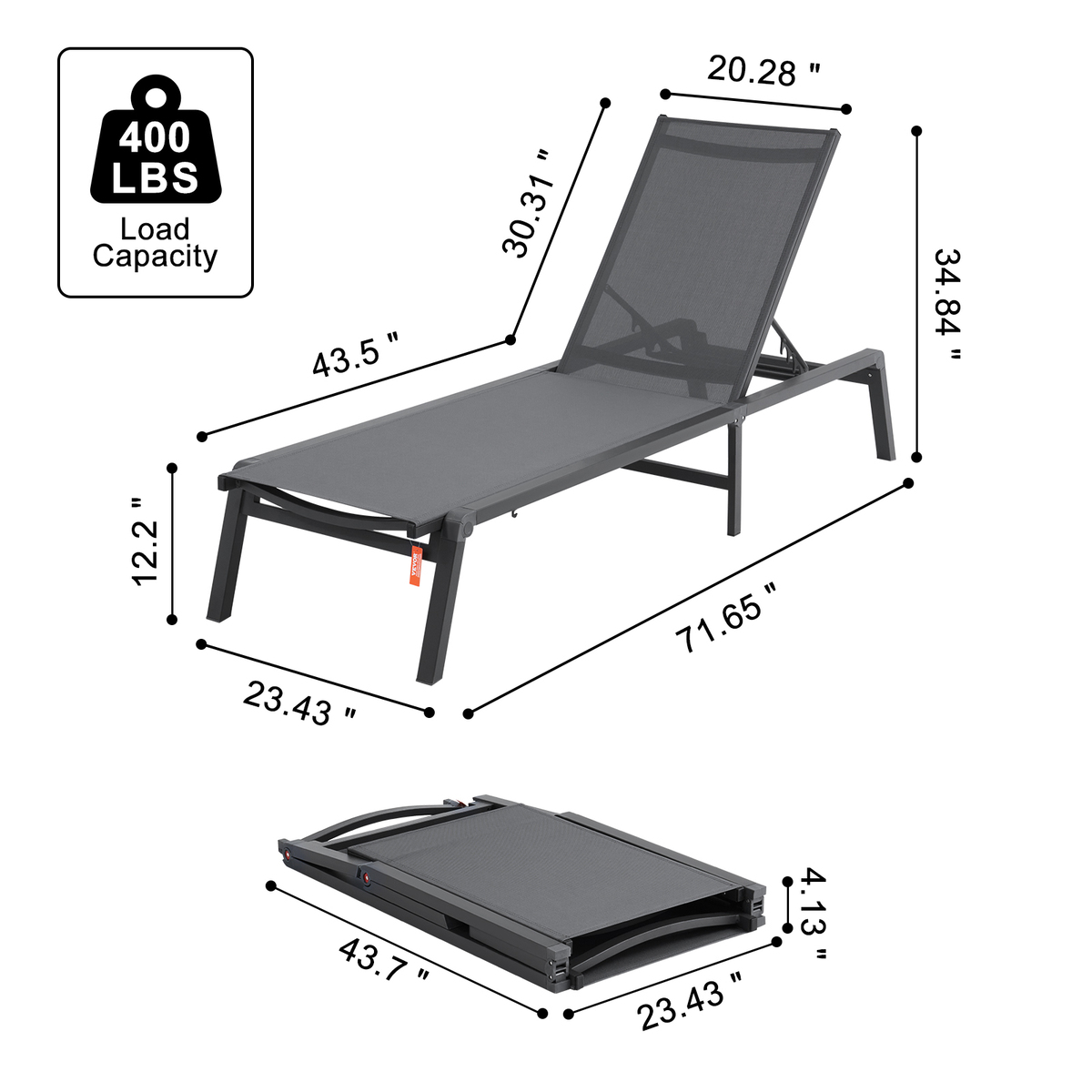 Portable Easy to Install: The outdoor chaise lounge has a lightweight aluminum frame and a foldable design for easy storage and transport. Unfold the lounge chair after unboxing. It's convenient and effortless.