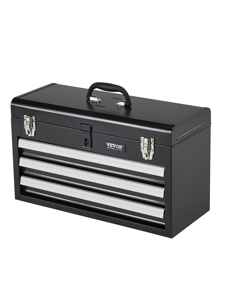 VEVOR 20.5" Metal Tool Box 3 Drawers EVA Liners Ball Bearing Lock Powder Coat