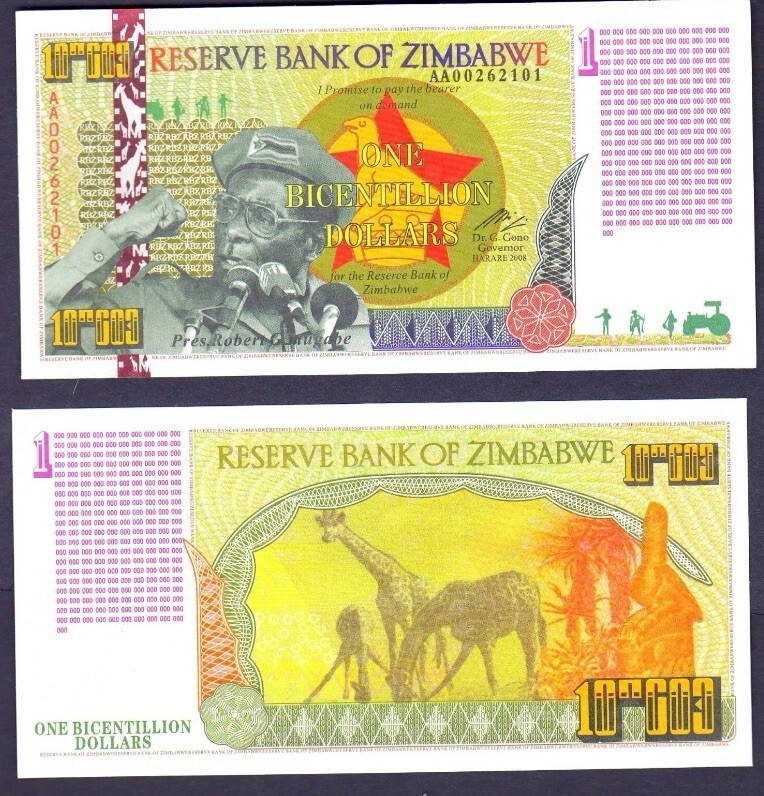Zimbabwe 1 Bicentillion Dollars Banknote and similar items