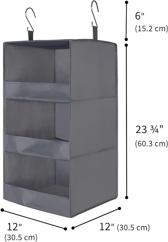 3-Shelf Hanging Closet Organizer and Storage Gray, 29 ½" H X 12" W X 12" D, 1-Pa