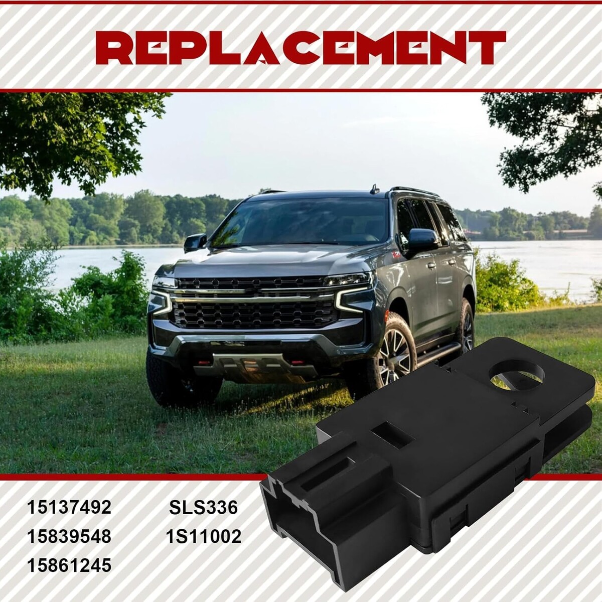 This brake light switch is compatible with Chevy Tahoe (2008-2011), Chevy Avalanche (2008-2011), Chevy Silverado 1500/2500/3500 (2008-2011), Chevy Suburban (2008-2011), GMC Sierra 1500/2500/3500 (2008-2011), GMC Yukon (2008-2011); Cadil1ac Escalade (2008-2011). OE Numbers: 15137492, 15839548, 15861245, SLS336, 1S11002.