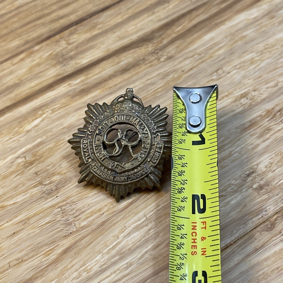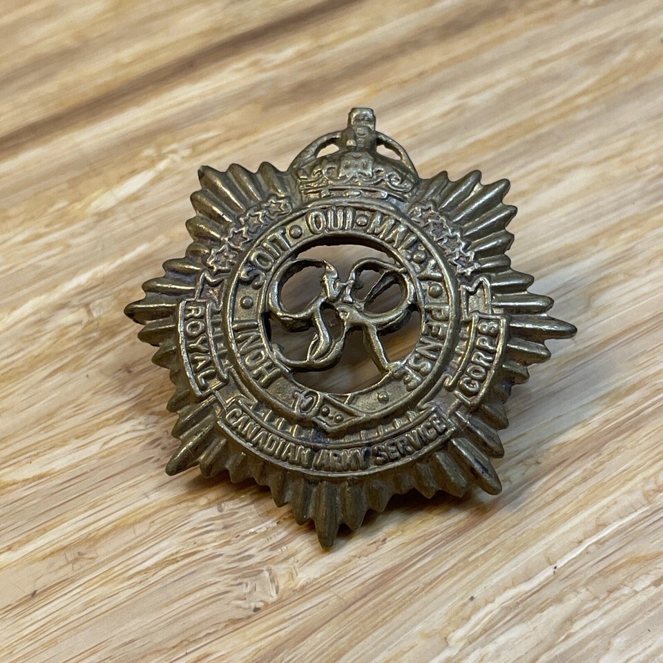 Vintage WW2 Royal Canadian Army Service Corps Officers Cap Badge KG JD