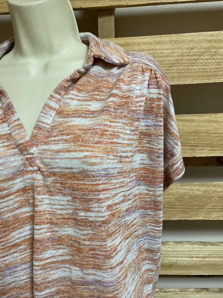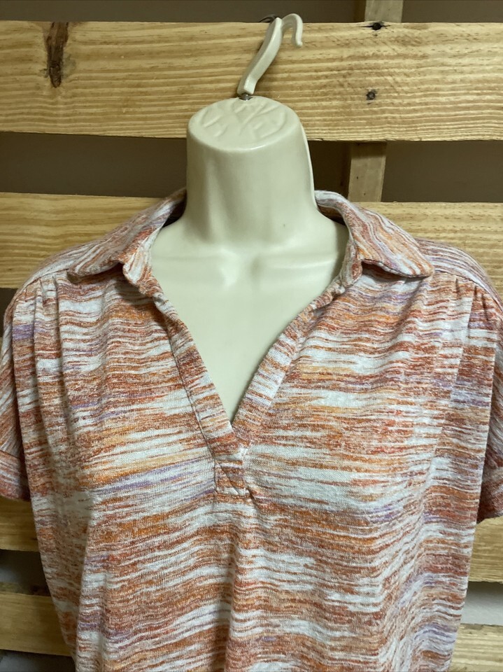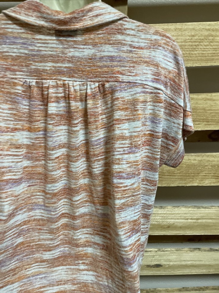 Bobeau Short Sleeve Striped Collared Top Shirt Blouse Woman's Size Large KG