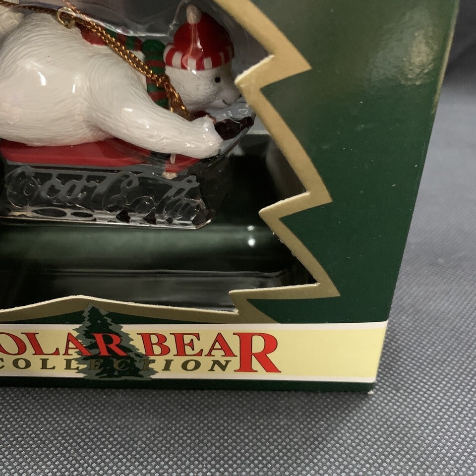 NEW Coca-Cola Bottle Polar Bear Christmas Xmas Holiday Ornament Sledding Bear KG