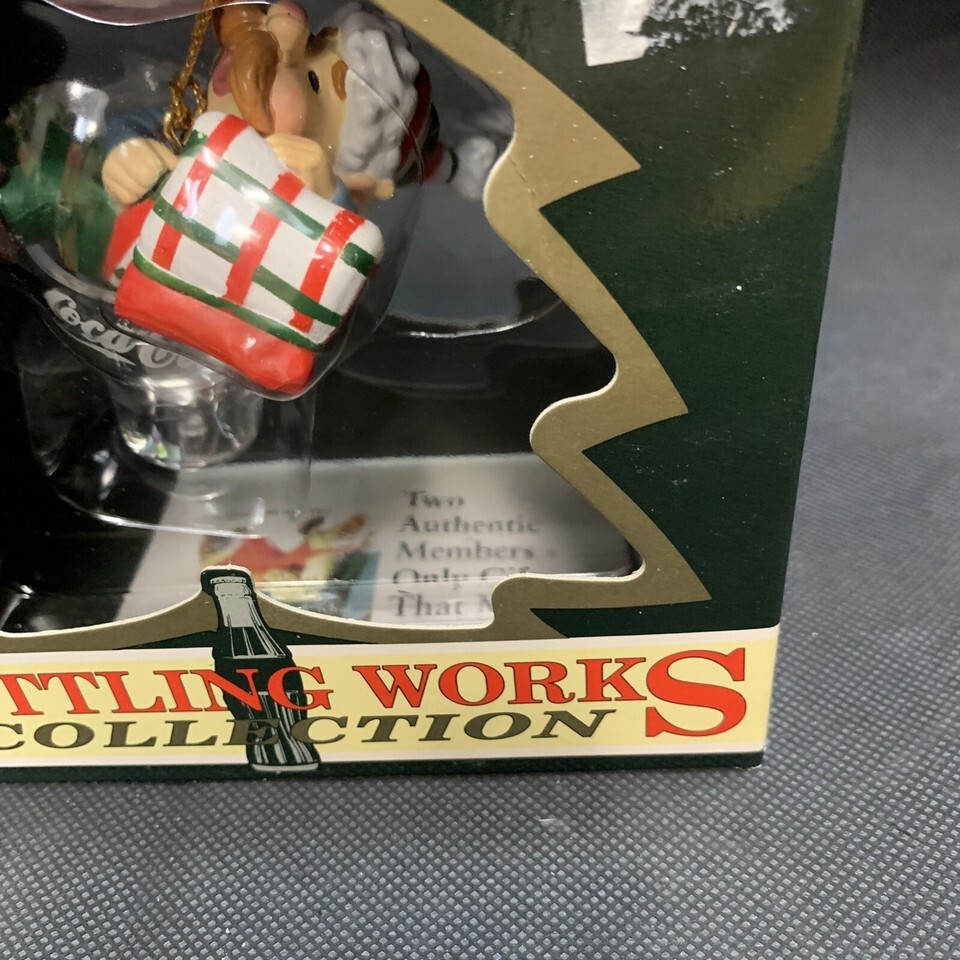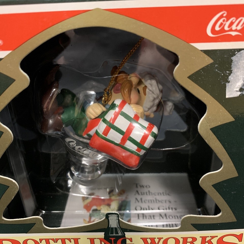 NEW Coca-Cola Elf On Coke Glass Christmas Xmas Ornament Snow Present KG
