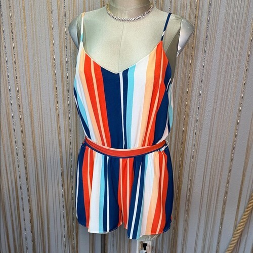 Just Be Striped Romper Spaghetti Straps Woman's Size Small Summer Casual KG