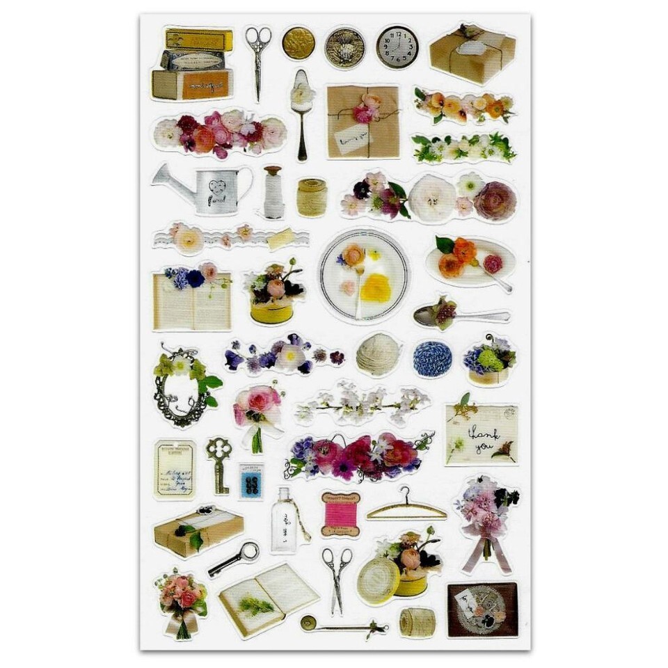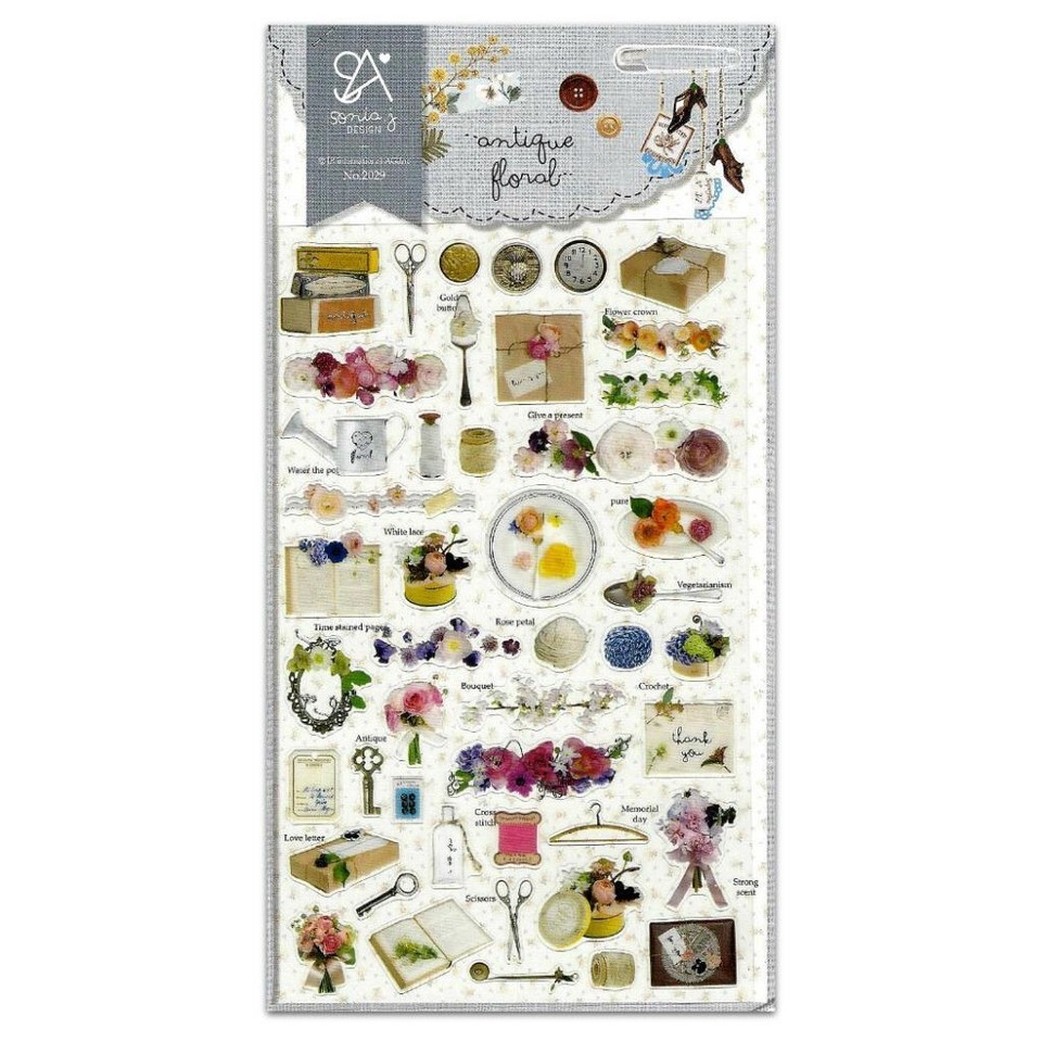 CUTE ANTIQUE FLORAL STICKERS Flower Kawaii Sticker Sheet Craft Scrapbook Seal