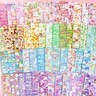 Each pack contains a sheet with over 45 individual stickers and a colorful themed backing card (shown in top photo with sticker sheet overlay).
