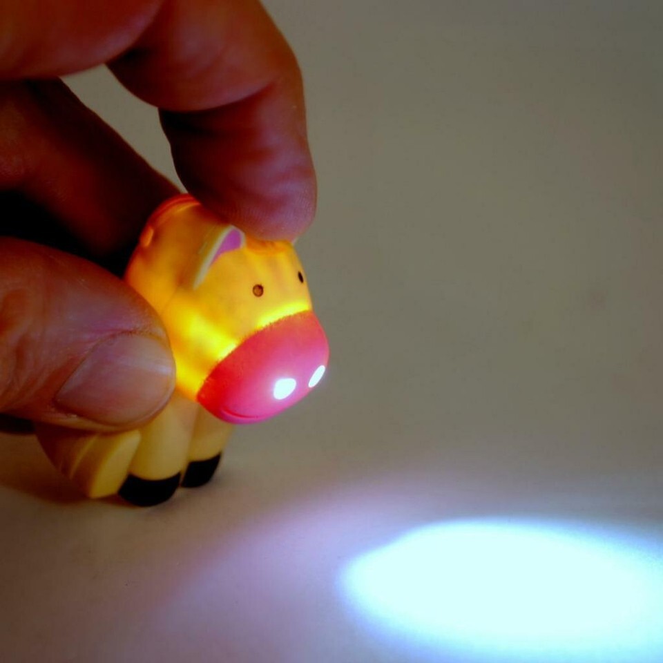 Simply push the button and a small but powerful light will brighten things up while it makes fun horse sounds.