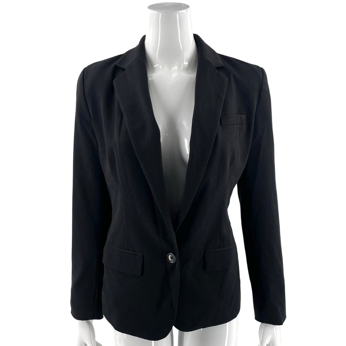 A New Day Womens Blazer Jacket Size 6 Black Solid Career One Button Closure
