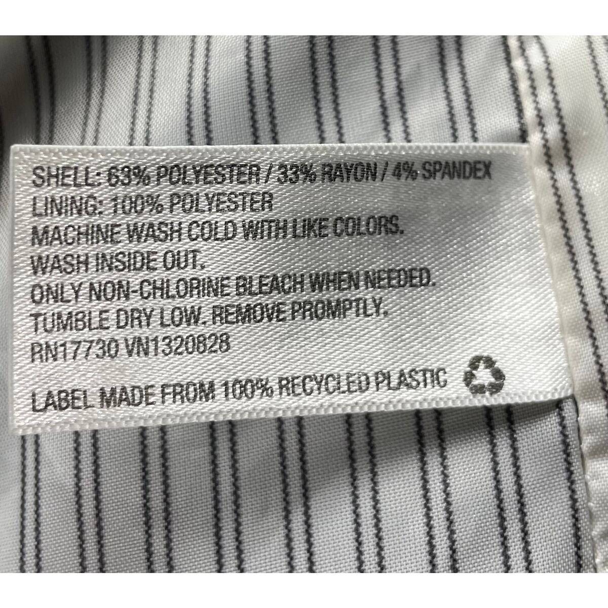 Material: 63% polyester, 33% rayon, 4% spandex