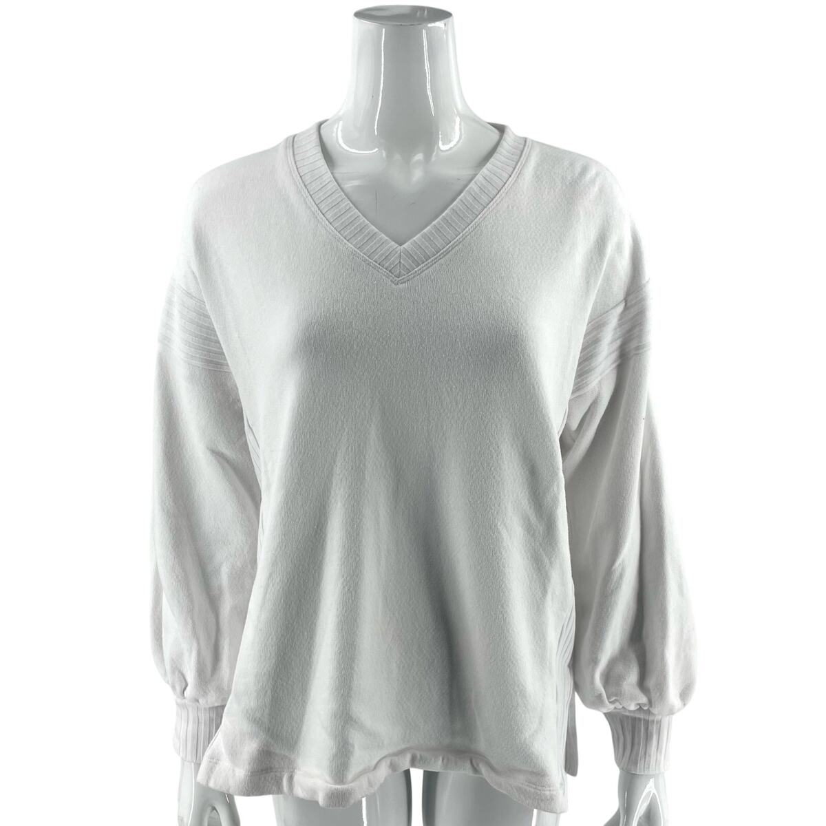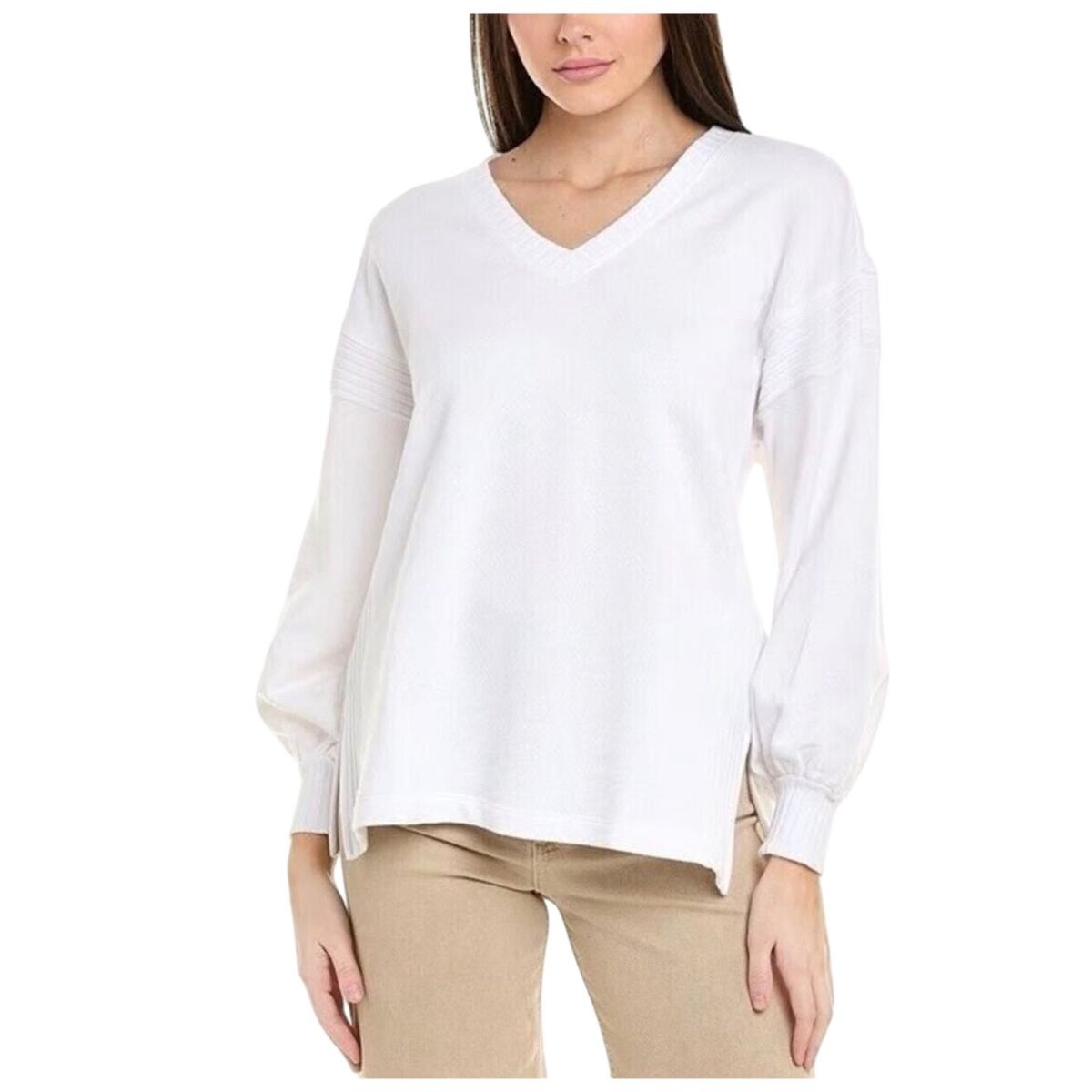 Cabi Womens Kayak Sweatshirt Pullover Top Size Small White V Neck Cotton