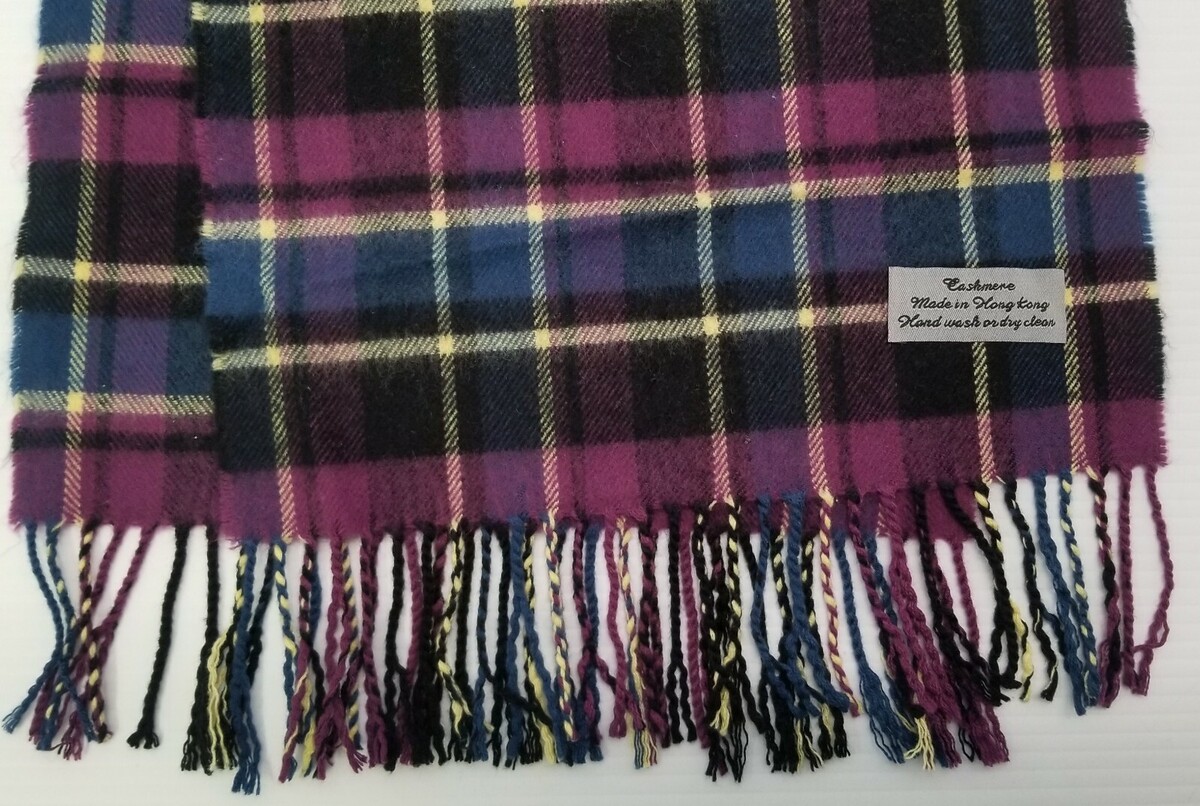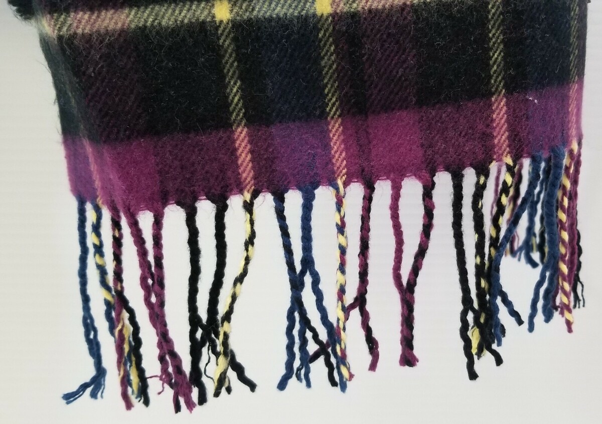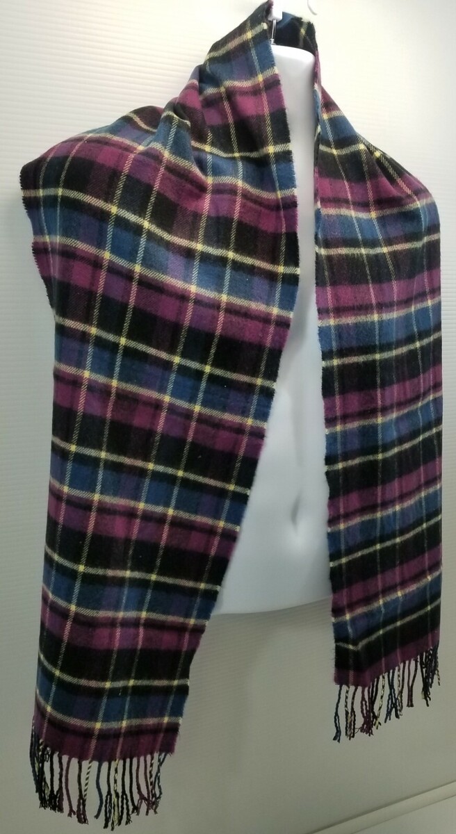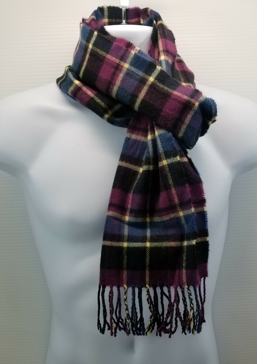 I) Women's Feel Tartan Plaid Checkered Fringed Tassel Scarf Purple Blue Black