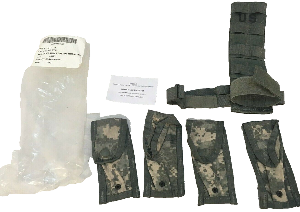 NWT US Army Issue MOLLE Carrier ACU Pattern Pistolman Pocket Set Holster