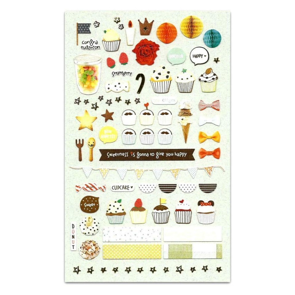 CUTE SWEET STICKERS Cupcake Dessert Food Nylon Sticker Sheet Craft Scrapbook