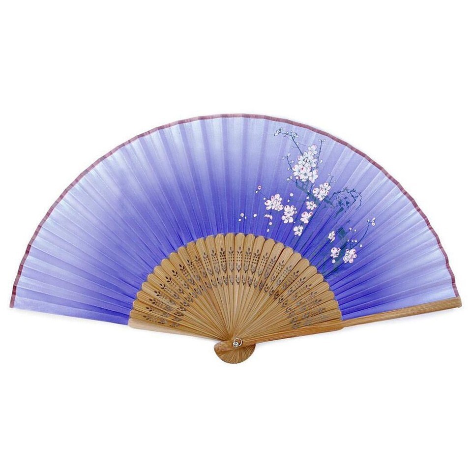 SILK CHERRY BLOSSOM HAND FAN 8" Sakura Multi Color Folding Pocket Purse Bamboo
