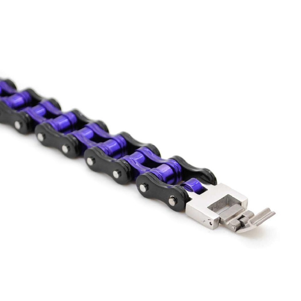 STAINLESS STEEL BIKE CHAIN BRACELET 8.5" Purple Black Solid Bicycle Motorcycle