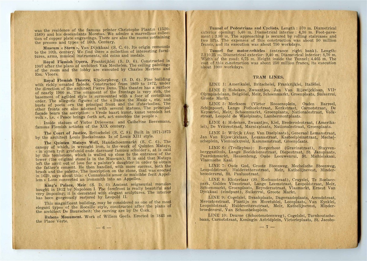 Antwerp Plan of the City Guide of Monuments & Curiosities 1930's Tramways