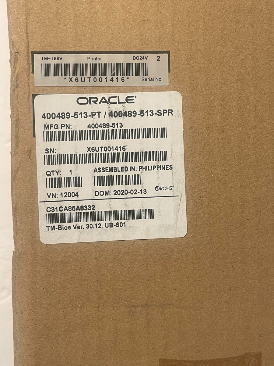 The Epson Micros Oracle TM-T88V (Model M244A) is a high-performance, multi-interface thermal receipt printer for POS systems, known for its speed (up to 350mm/s), reliability, advanced cloud/mobile connectivity (Serial (RS-232) USB,, and paper-saving features, ideal for both traditional and web/tablet-based setups. The "Micros Oracle" branding indicates compatibility with Oracle MICROS systems, often used in hospitality, and the M244A model usually includes a power supply and essential interfaces for quick setup