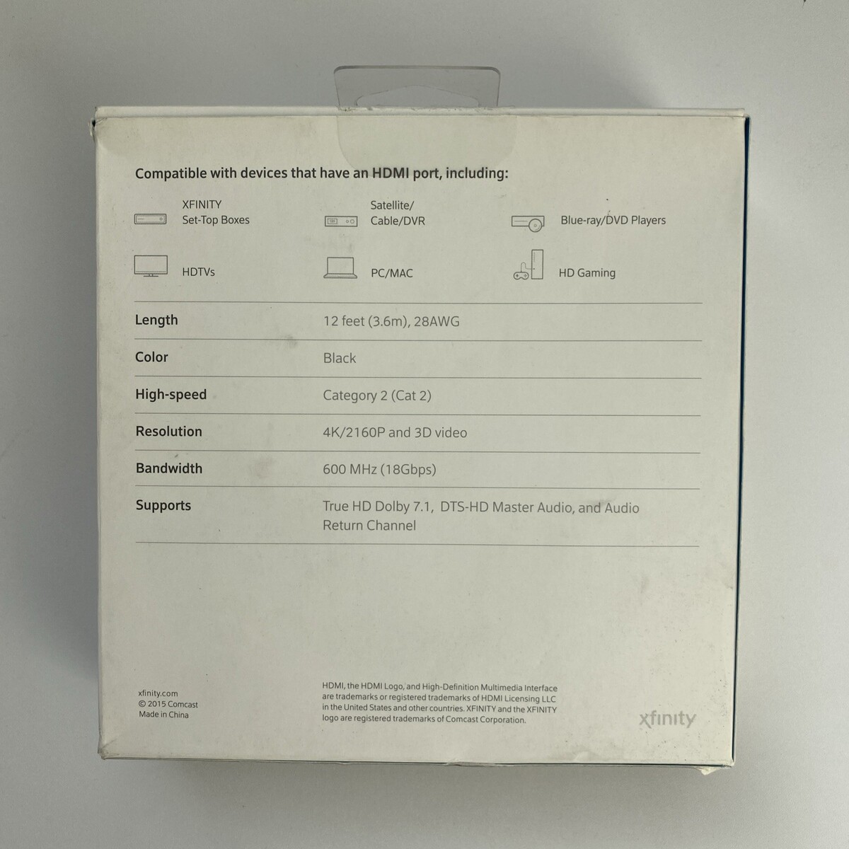 Xfinity Comcast - 12Ft. HDMI 4K /2160P High Speed Cable - Cat 2 - New