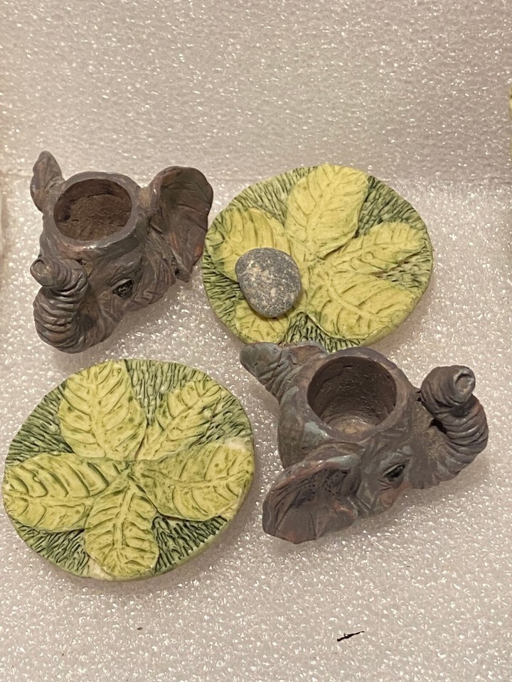 The elephant figurines are pre-owned comes with everything shown in the pictures