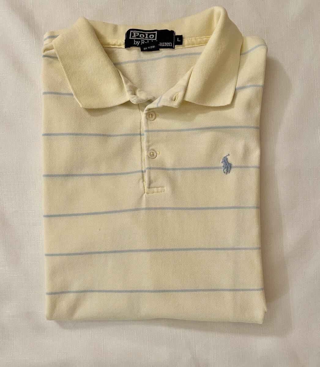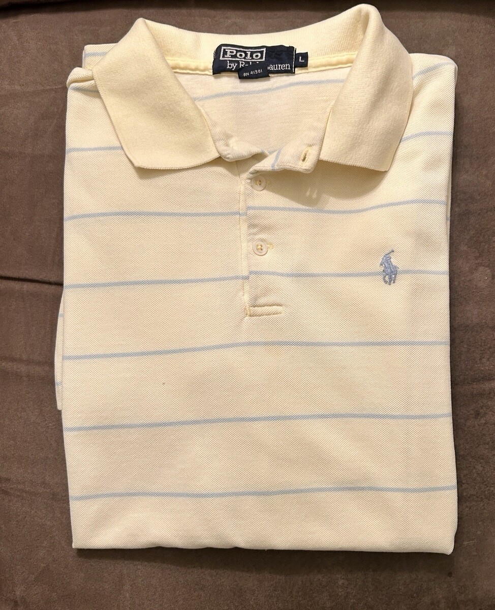 Vintage Polo Ralph Lauren Yellow Blue Stripe Men’s L Polo Shirt
