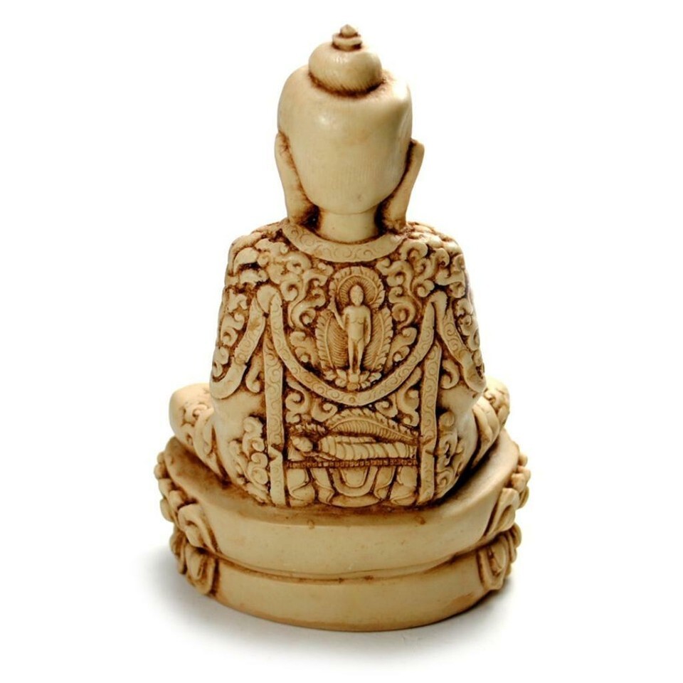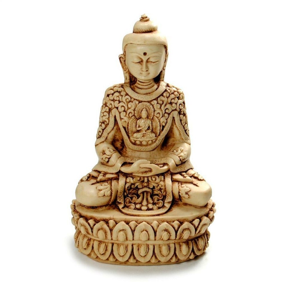 BUDDHA STATUE 5.5" Meditating Buddhist Icon High Quality Off White Resin India