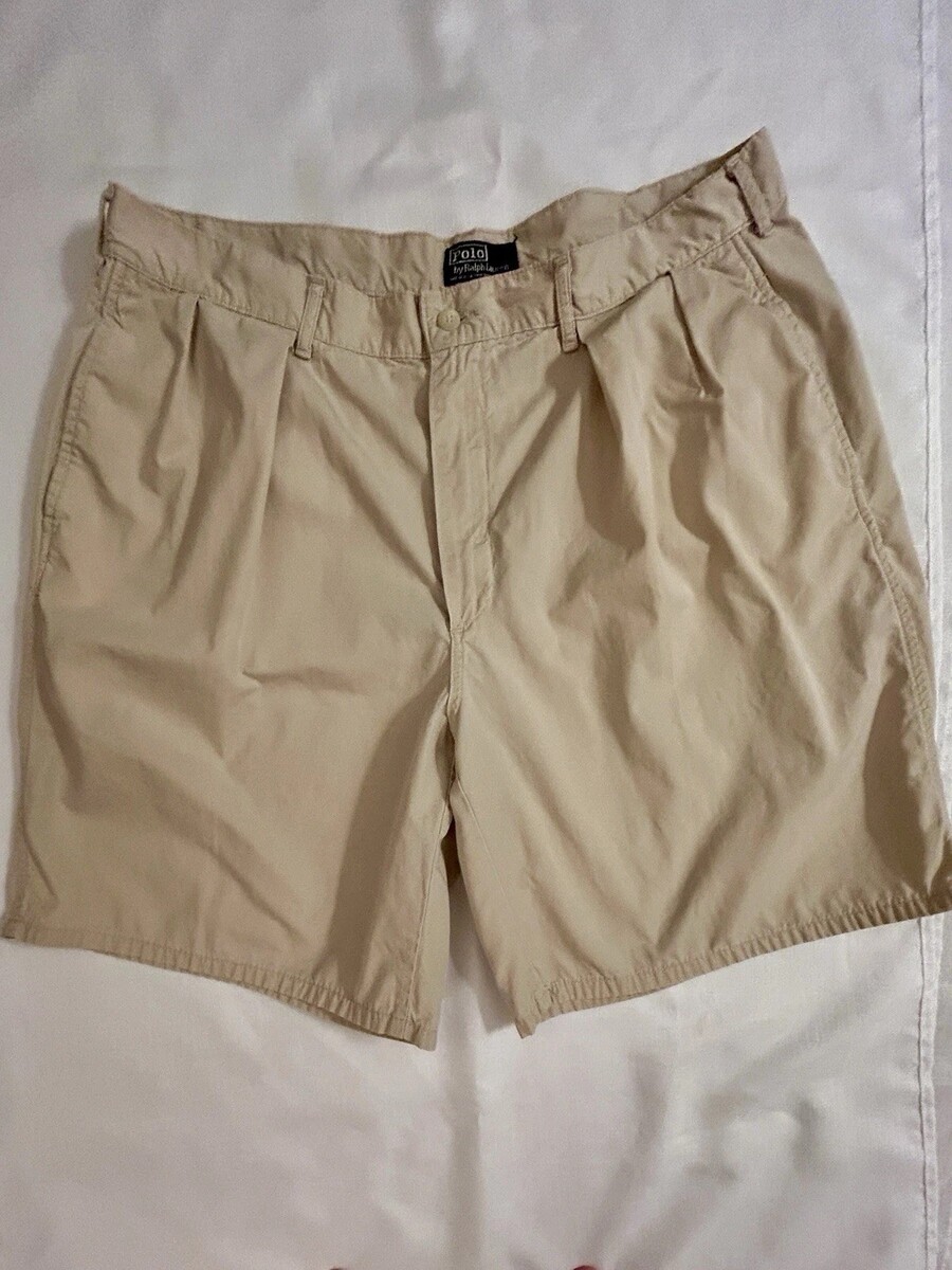 Vintage Polo Ralph Lauren Chino Shorts Mens 38 Beige Pleated 9.5” Inseam 1990s