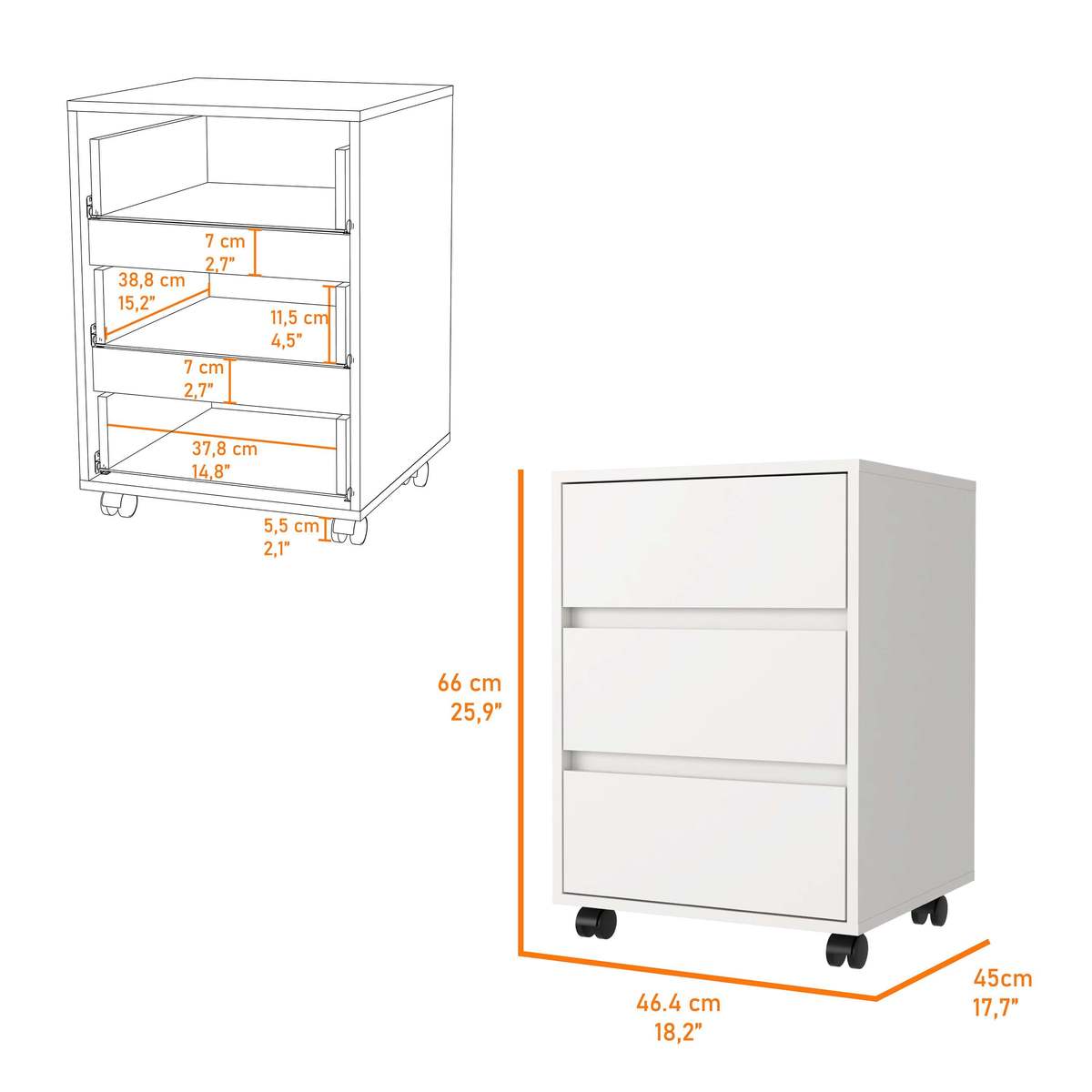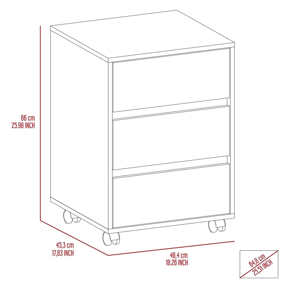 This Mobile File Cabinet with 3 drawers is useful for all office supplies. Keep your belongings neat and easy to locate by storing them all in one cabinet that moves!