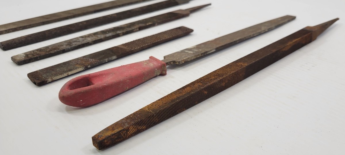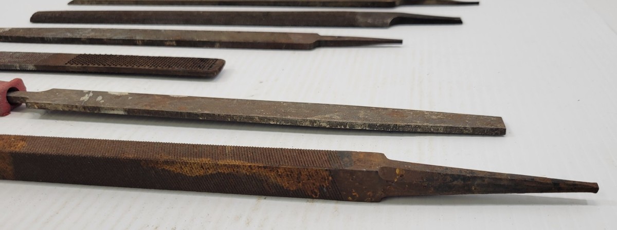 Files are vintage used old shop/garage equipment with signs of age, use and years of storage. Most are either unmarked or unable to be read due to age.