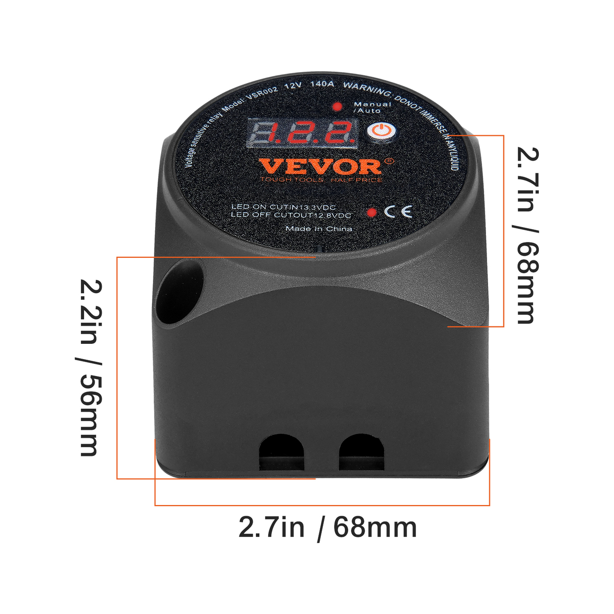 VEVOR Dual Battery Isolator Kit 12V140A Manual/Auto LCD VSR ATV UTV RV Camper