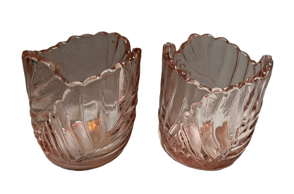 Larry Laslo Towle 1985 Pink Glass Candle Holder Textured Set Of 2