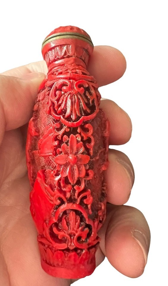 Antique Chinese Red Cinnabar Snuff Bottle and similar items