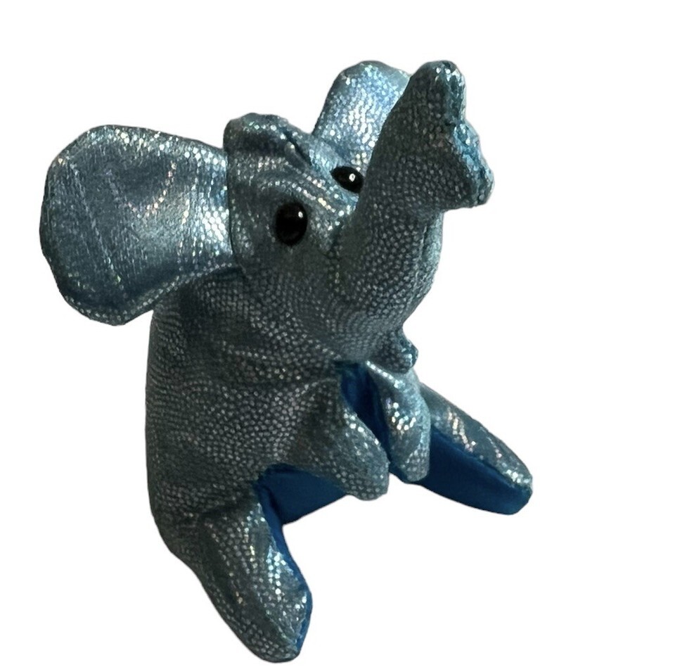 ELEPHANT Baby Elephant Beanbag Plush Sitting Blue Metallic Shiny Mini Small 2.5”