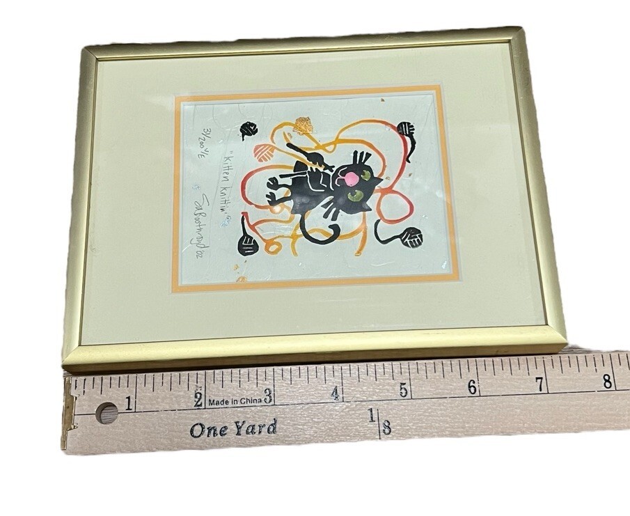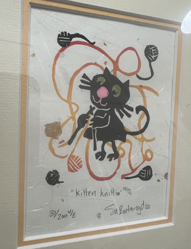 Sa Boothroyd Framed Art Signed Kitten Knitten Knit Cat Whimsical Canada