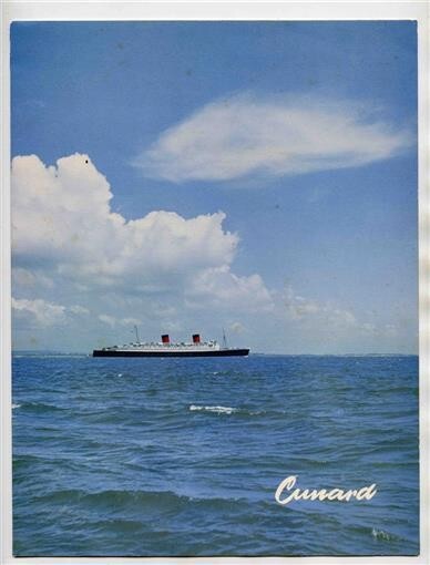 A 4 page menu dated September 8, 1952. Cunard Gala Dinner Menu from the R M S Queen Elizabeth. Measures about 8" x 10 1/2" when closed. A study of Sea Sky on the cover. Queen Elizabeth outbound from Southampton