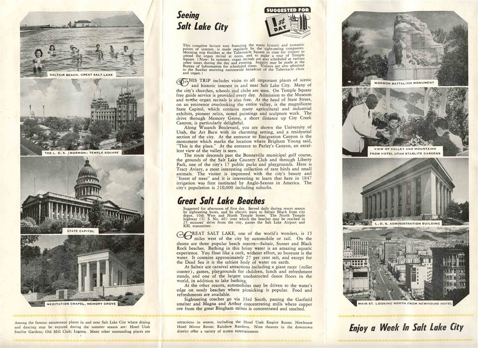 Salt Lake City Utah What to See What to Do Brochure 1930's