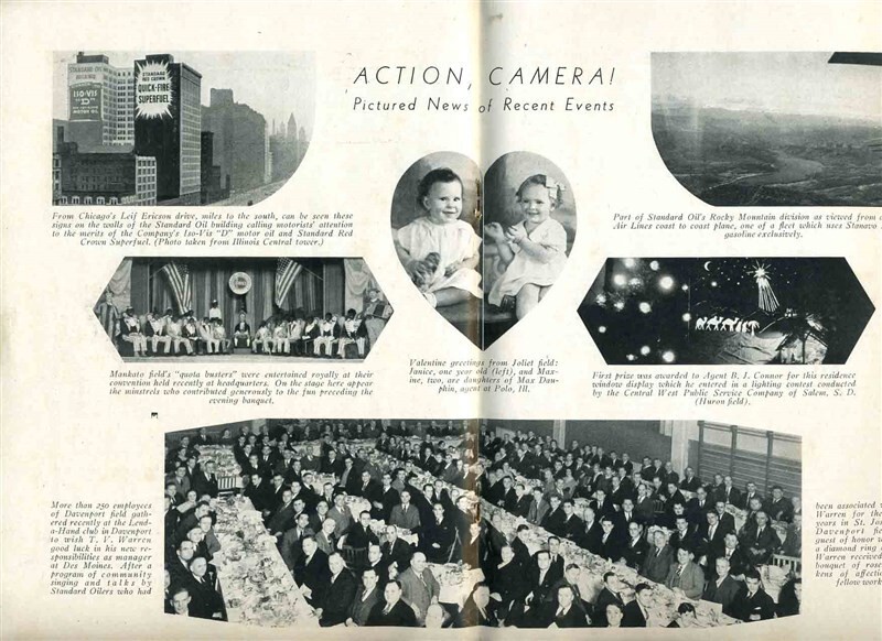 The STANOLIND Record for February 1934. Published for the employees of Standard Oil Company ( Indiana). This 32 page issue is in very good condition and contains many stories and photos about the company and it's employees. Loads of photos including the pictures of Iron and Steel Mills in a feature article. Plus photos and articles on Bonnets for Famous Babies and the 1934 Chicago World's Fair European Village and much more.