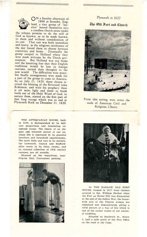 1930s Plymouth Massachusetts Brochures 1st Church Antiquarian Harlow Old Fort