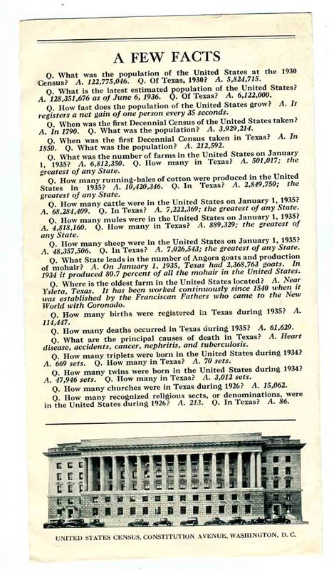 Department of Commerce 1936 United States Census Population Map Texas Facts