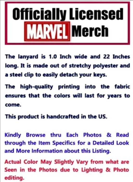 With a length of 22 inches and a width of 1 inch, this keyring lanyard is a perfect addition to any Marvel Universe fan's collection.