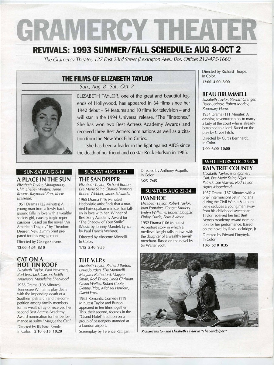 Gramercy Theater Grand Opening Elizabeth Taylor Films Programs 1993 New York