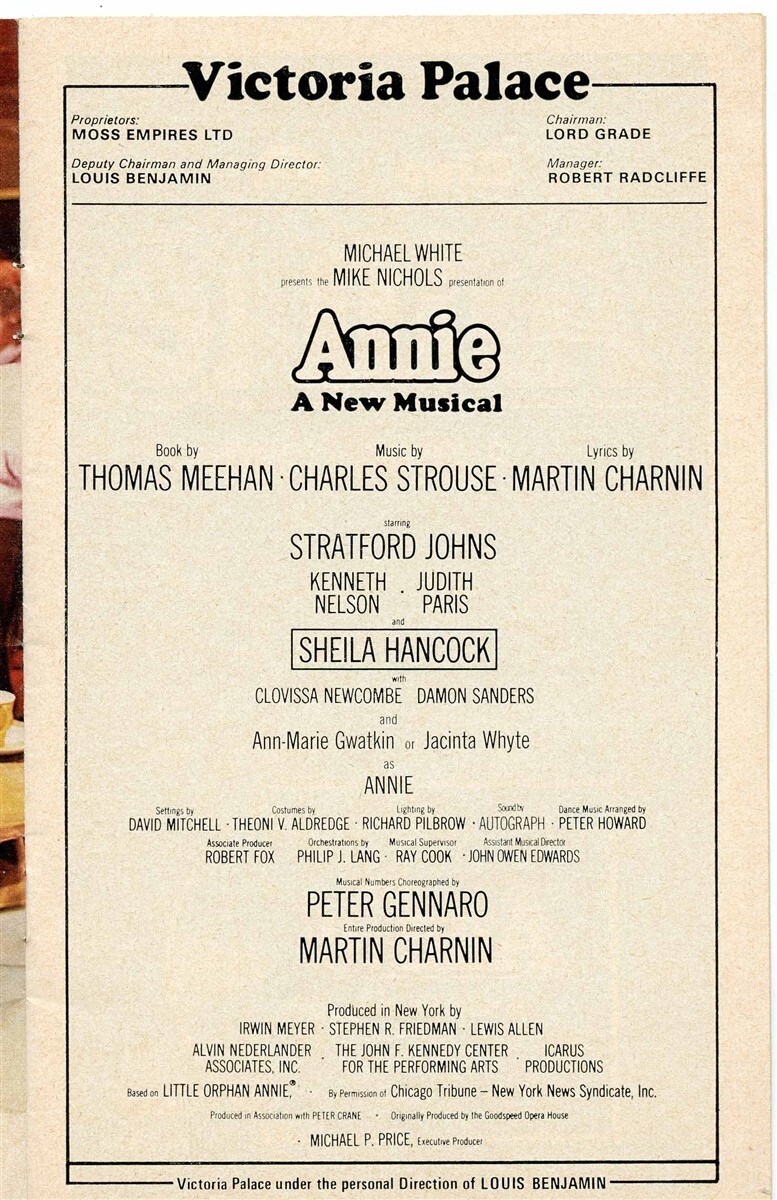 Annie New Musical Program Victoria Palace Theatre London 1978 Johns Hancock.