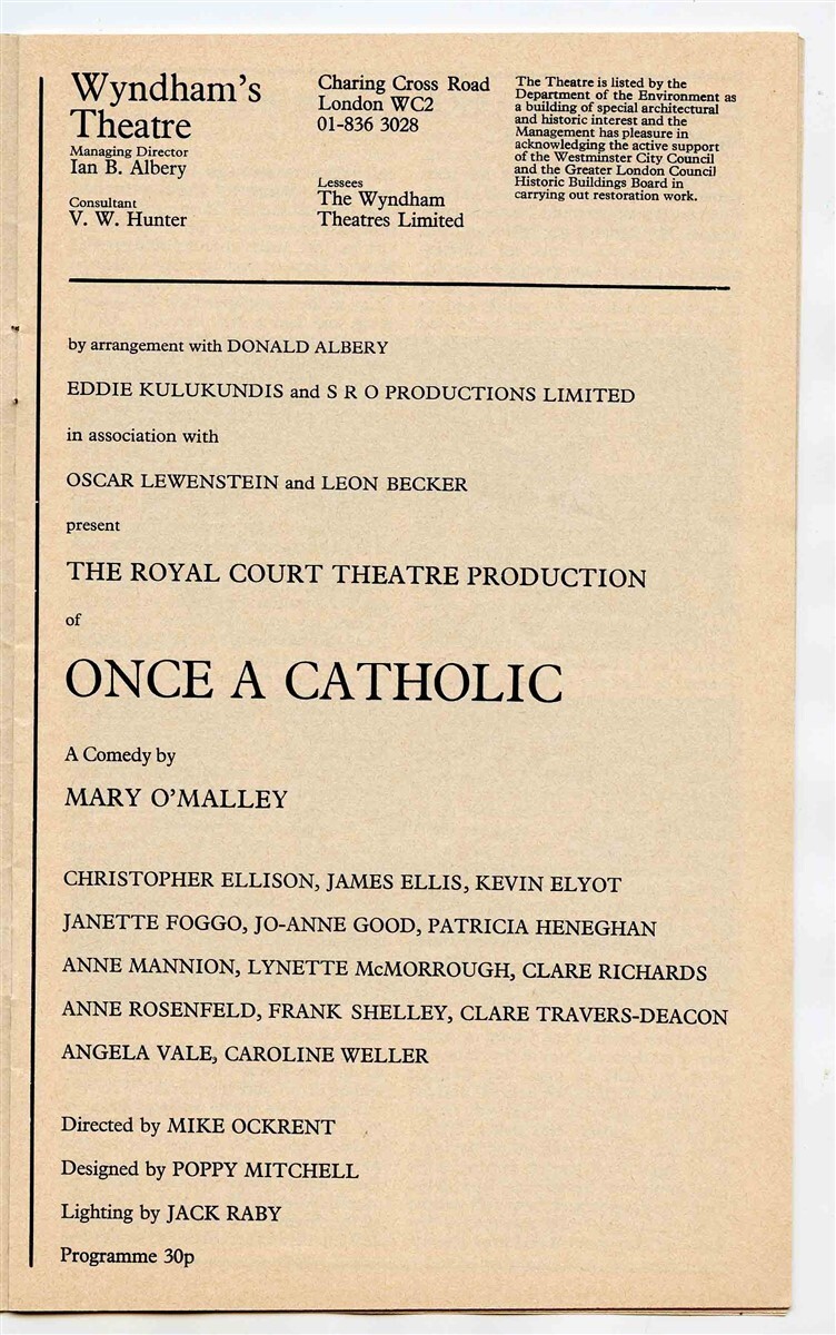 A Once a Catholic Program, A comedy by Mary O'Malley. Performed at Wyndham's Theatre in London in 1979 . In fine condition.