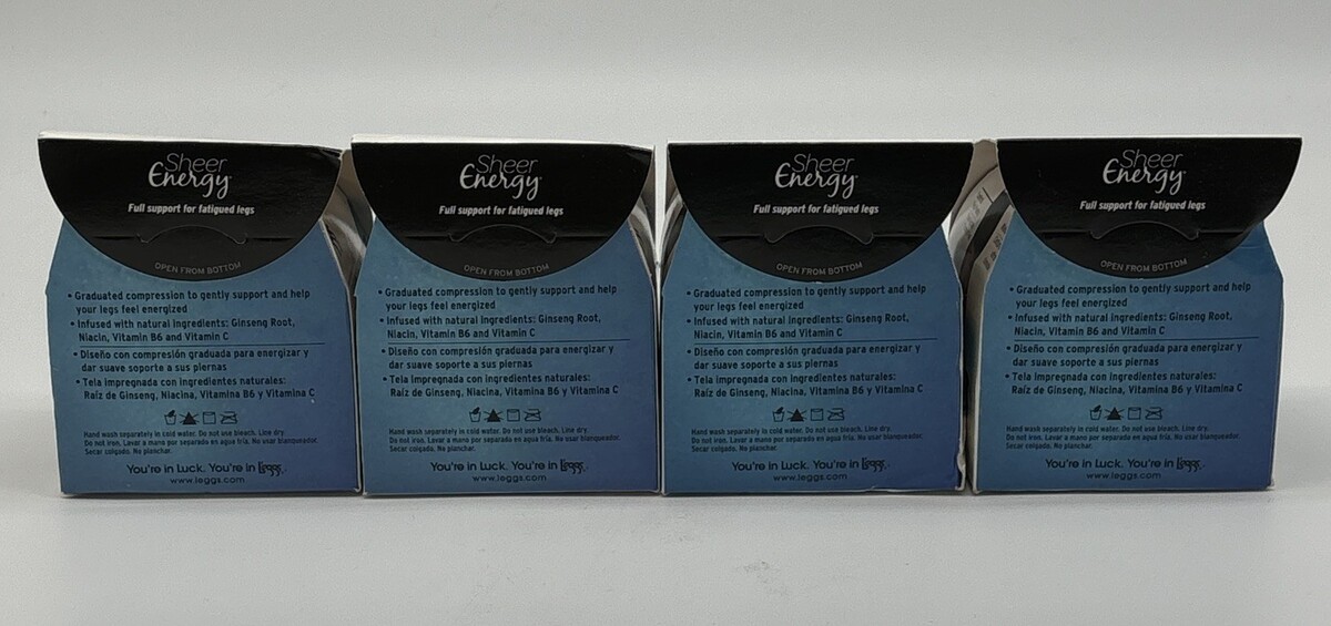 4x L'eggs Sheer Energy Control Top Energizing Leg Pantyhose Medium B Jet Black